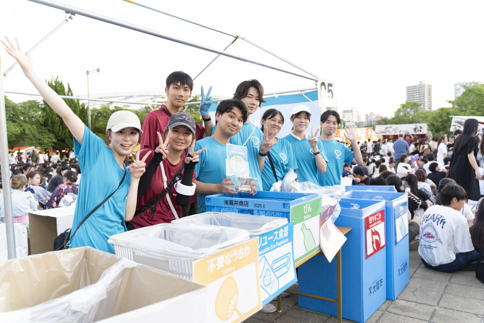 天神祭ごみゼロ大作戦は人が常駐し分別を呼びかける分別ステーション、繰り返し何度も洗って使用できる「リユース食器」を露店に導入し、ごみ減量と散乱ごみの防止を実施する日本最大級の取組です。