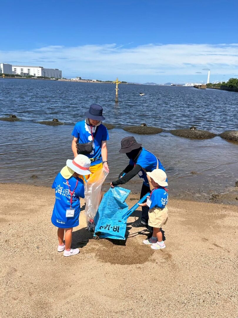子どもたちも学生も大人も一緒に堺浜自然再生ふれあいビーチの海岸を清掃しました。