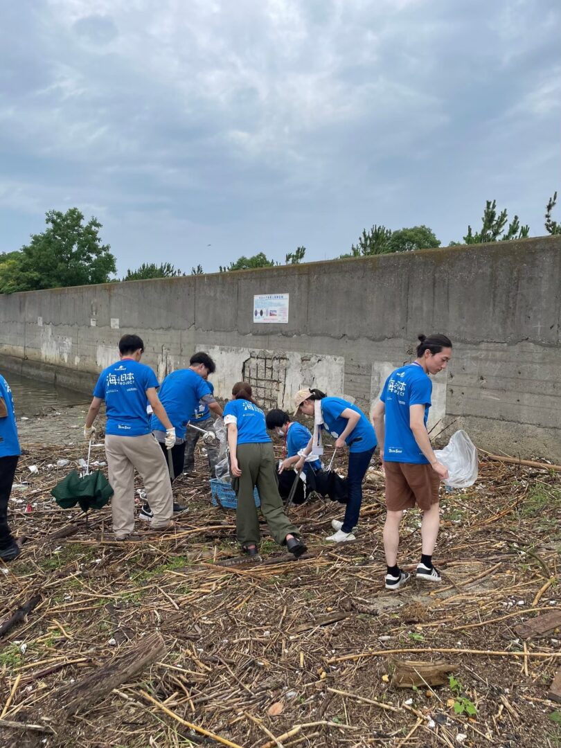 子どもたちも学生も大人も一緒に堺浜自然再生ふれあいビーチの海岸を清掃しました。